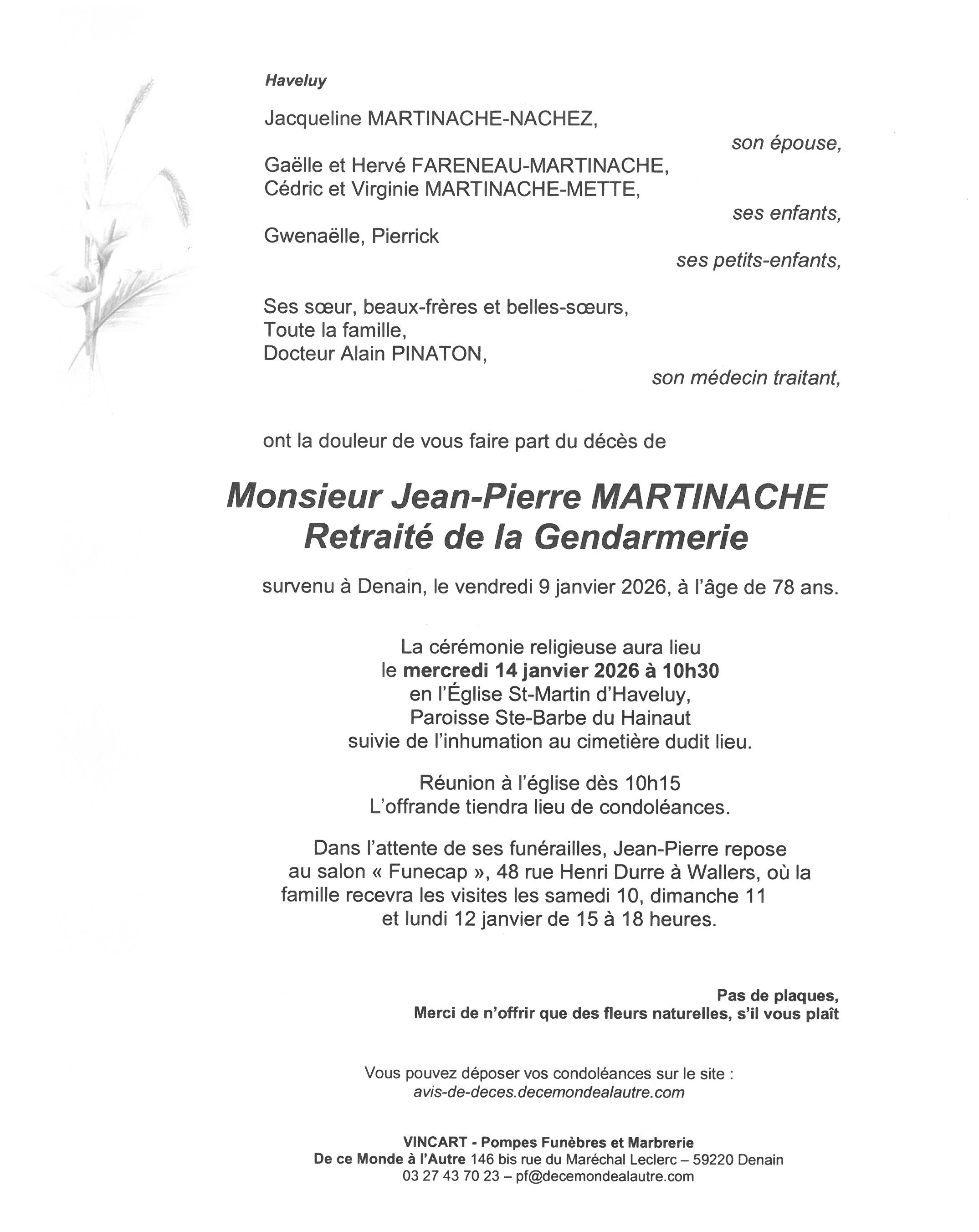 Déroulement des funérailles de Monsieur Jean-Pierre MARTINACHE